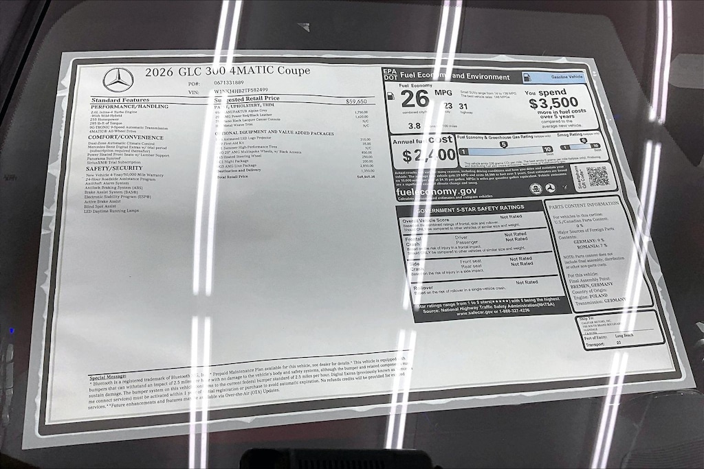 Perfect for a driving enthusiast demanding comfort and luxury in a striking 4 door design! A turbocharger is also included as an economical means of increasing performance. Mercedes-Benz prioritized practicality, efficiency, and style by including: heated door mirrors, cruise control, and the power moon roof opens up the cabin to the natural environment. Mercedes-Benz made sure to keep road-handling and sportiness at the top of it's priority list. Smooth gearshifts are achieved thanks to the 2 liter 4 cylinder engine, and for added security, dynamic Stability Control supplements the drivetrain.